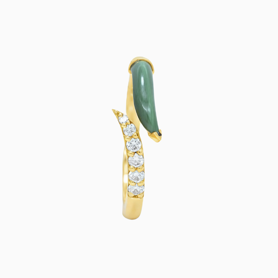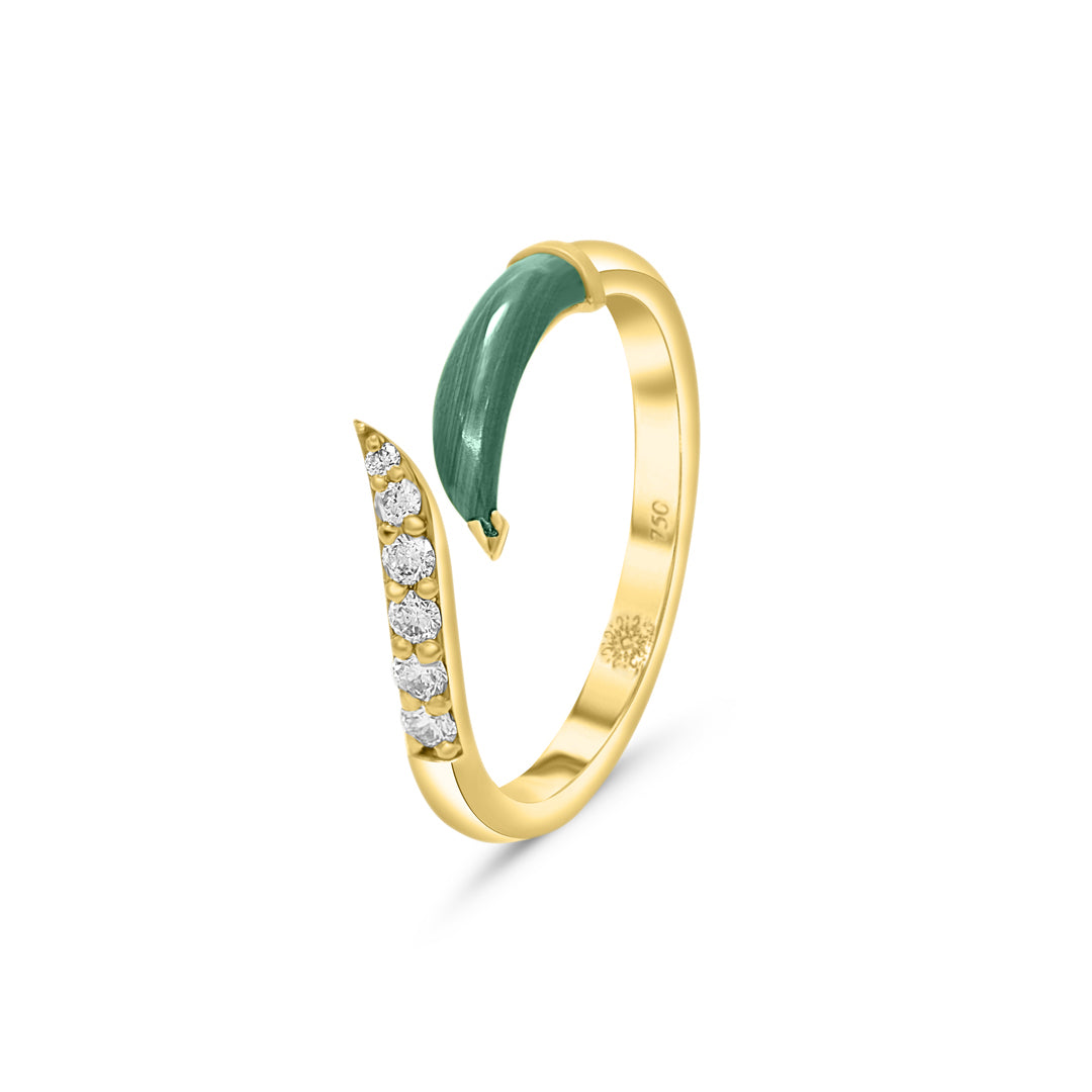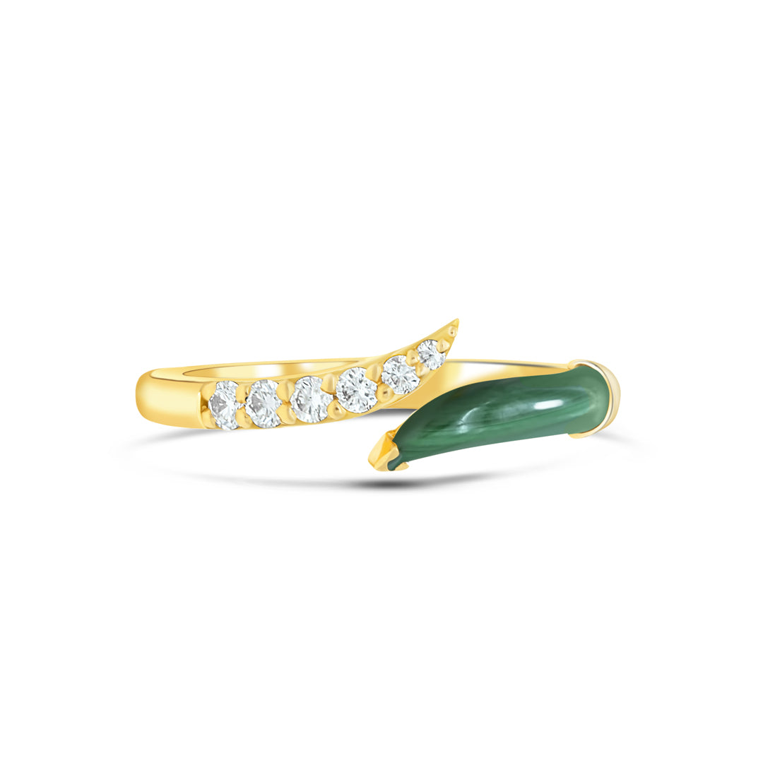 One path on the ring is adorned with radiant diamonds, symbolizing clarity, guidance, and the light of faith that leads us through life’s challenges. The other path features green malachite, representing renewal, tranquility, and the sacred connection to spirituality. Together, these